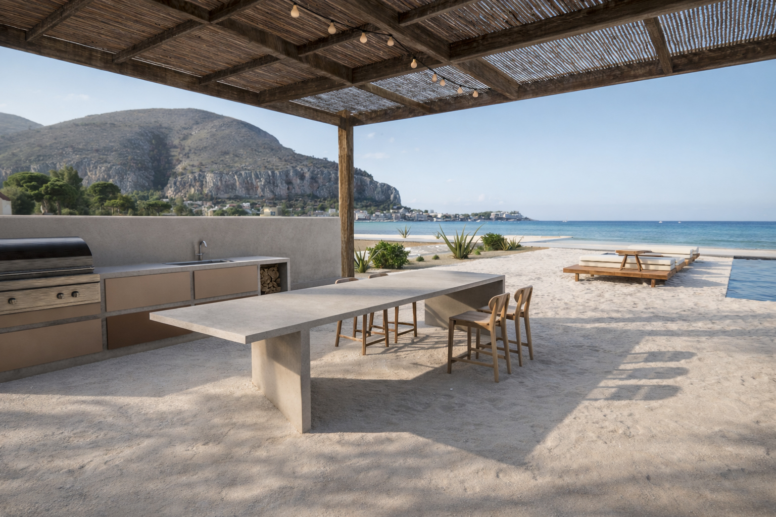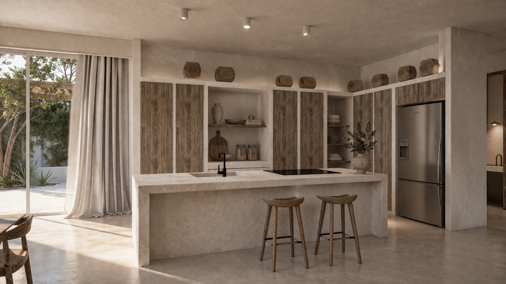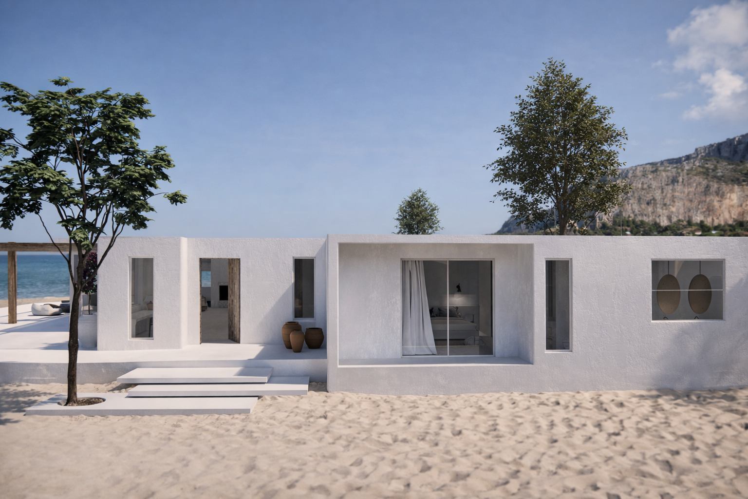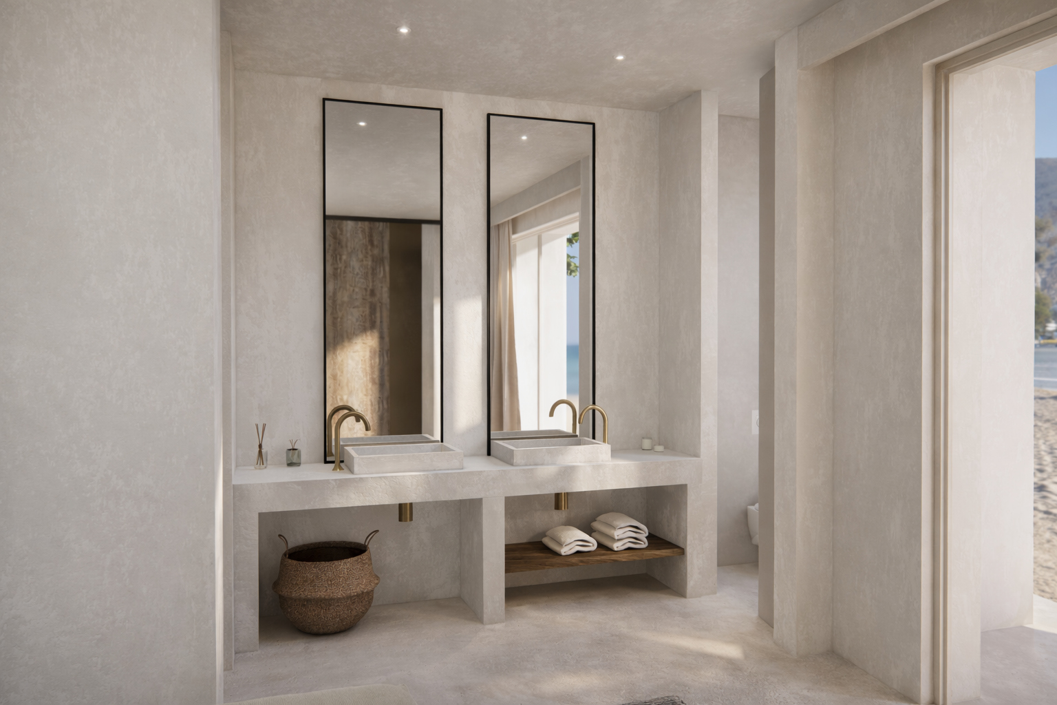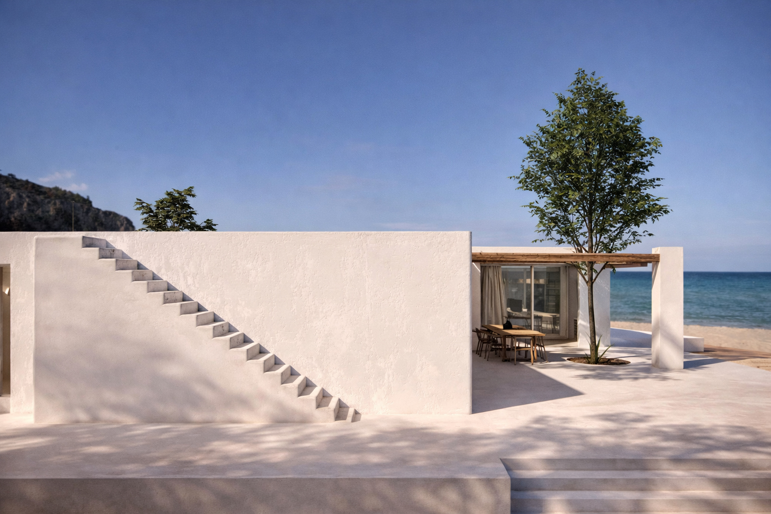 Set along the edge of the water, the architecture is conceived as a quiet backdrop to everyday rituals. Defined by clean lines and softened by texture, the volumes create a sequence of sheltered moments—spaces that invite pause rather than movement.
