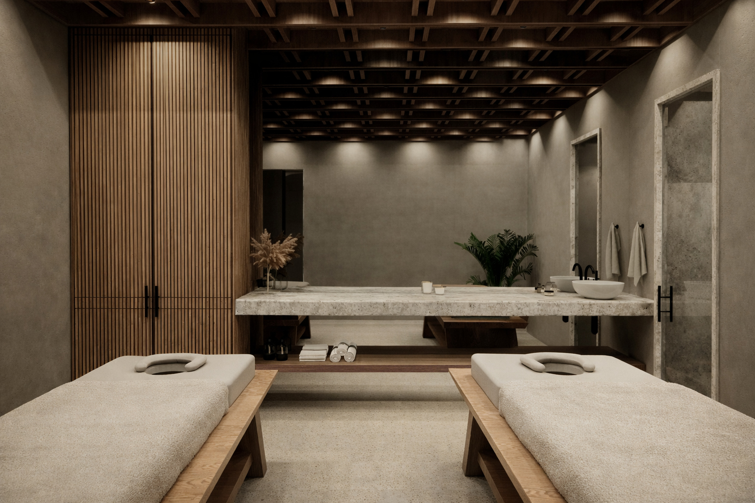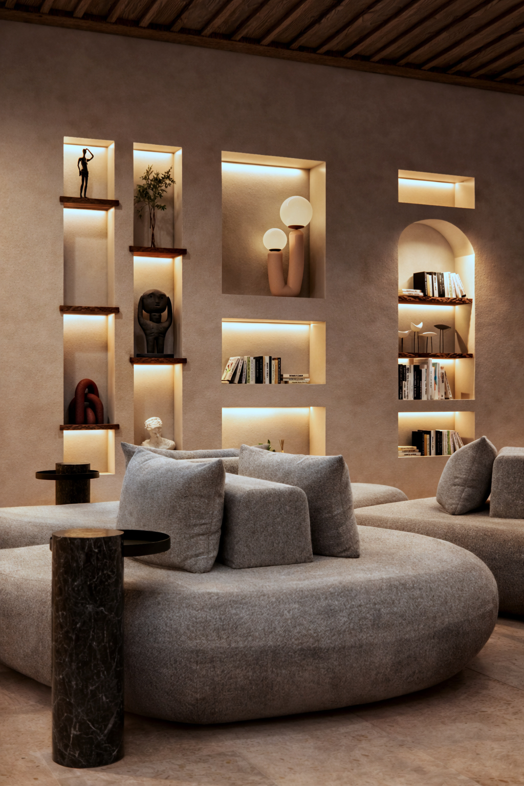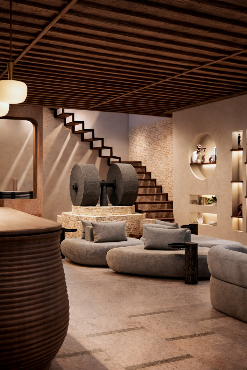 A dialogue between mass and void, light and texture — the space is designed as a quiet retreat, where architecture becomes an immersive sensory experience.