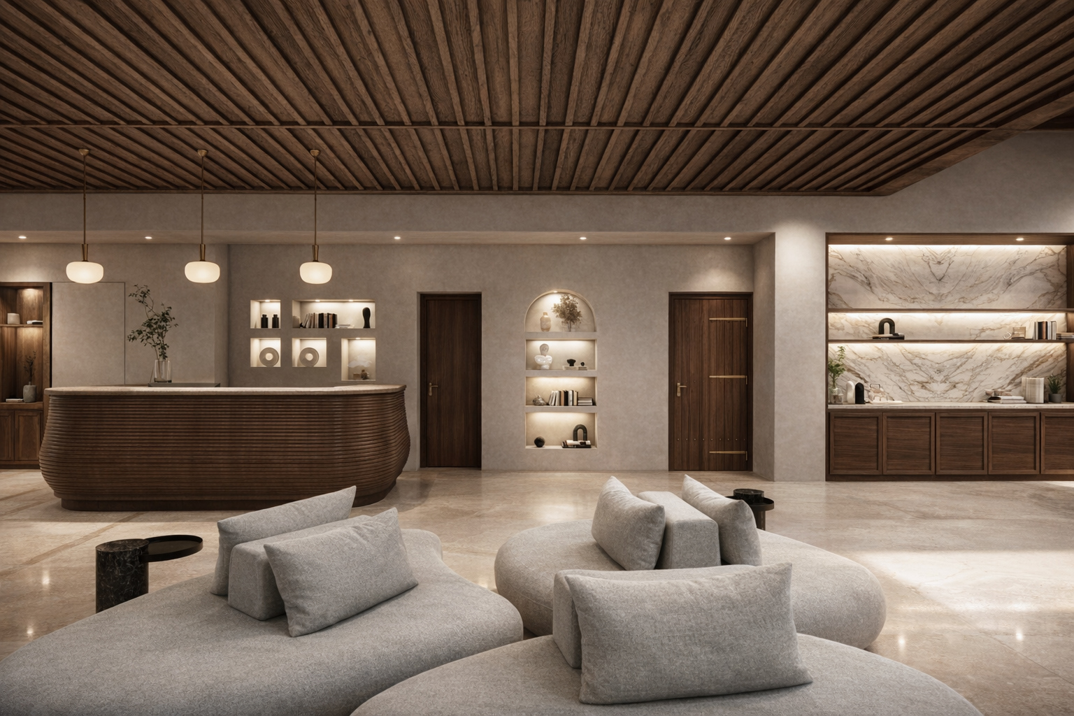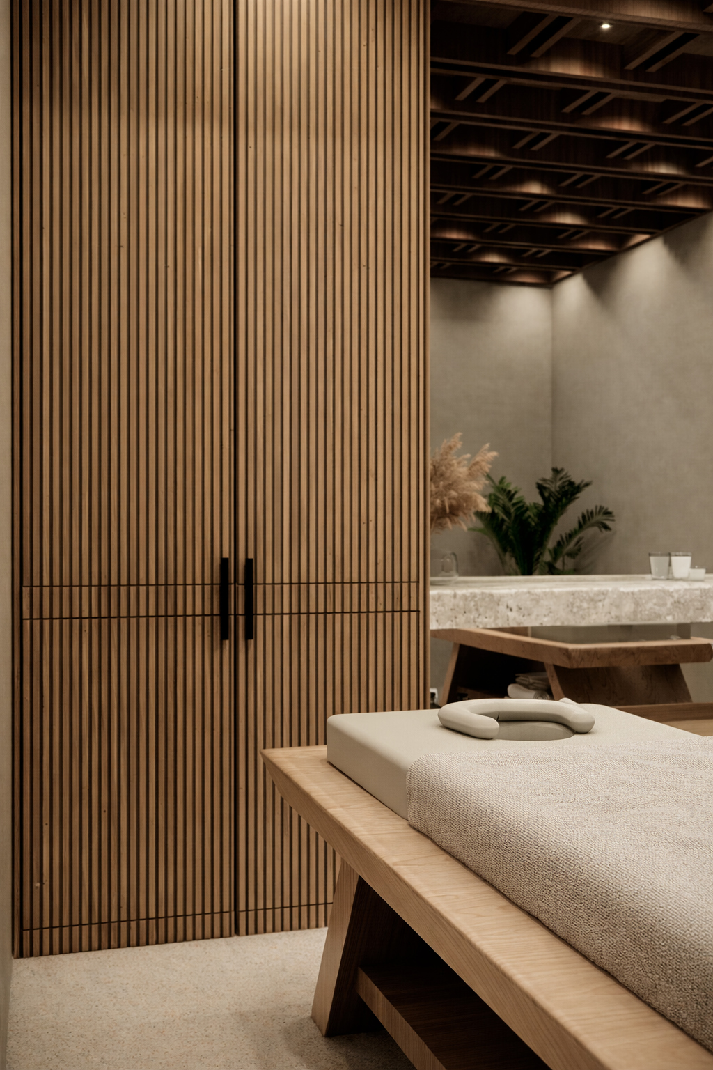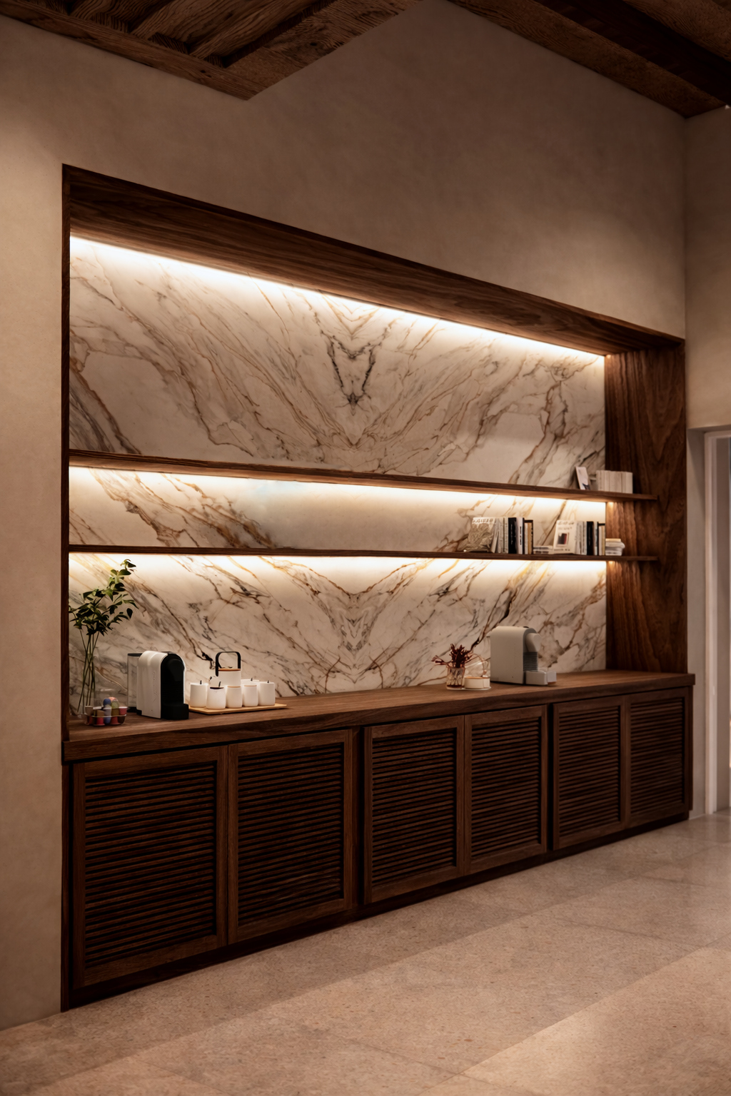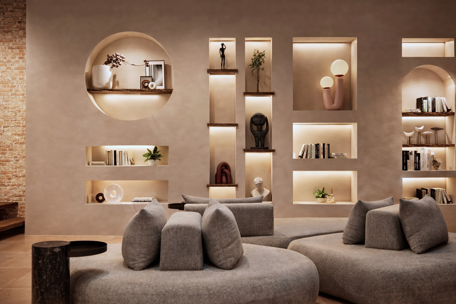 A dialogue between mass and void, light and texture — the space is designed as a quiet retreat, where architecture becomes an immersive sensory experience.