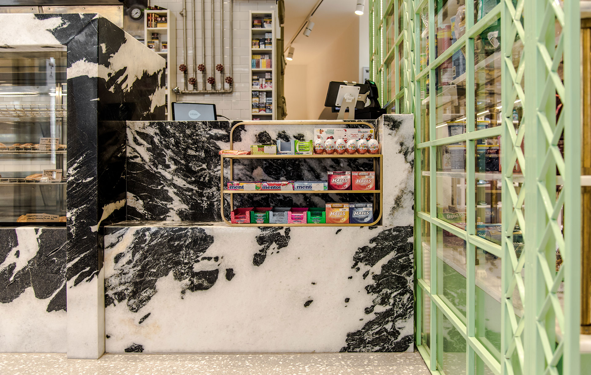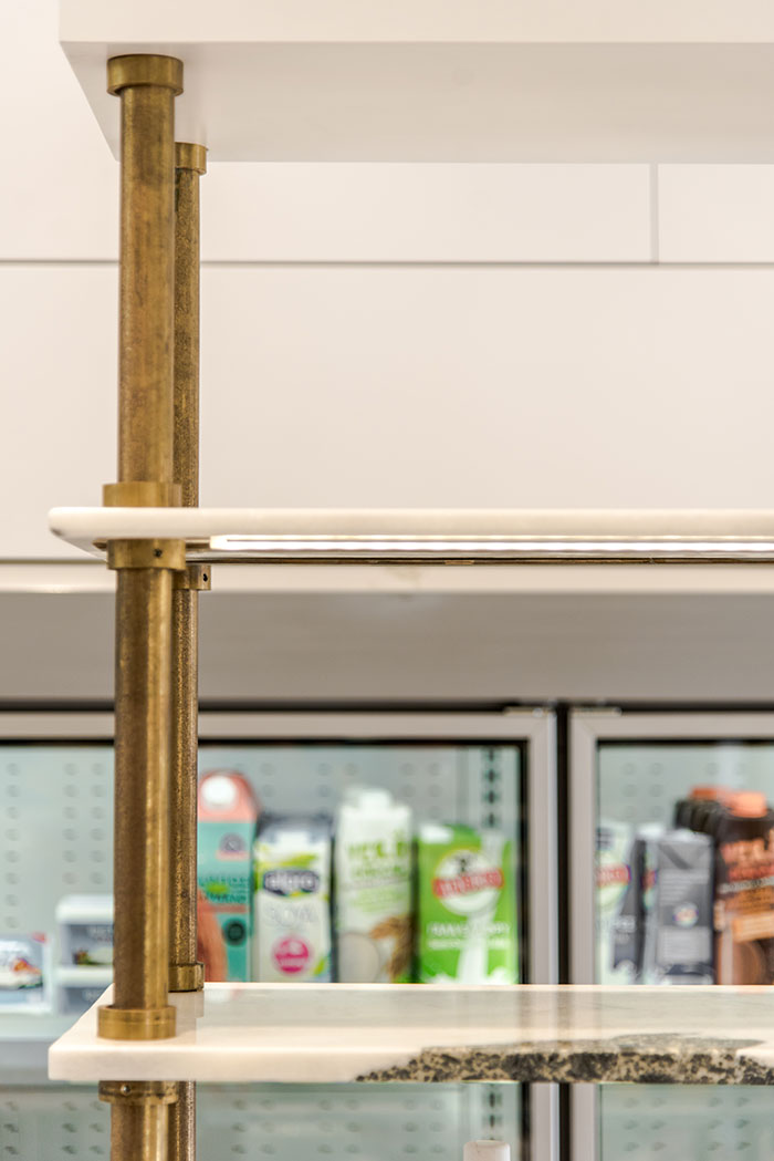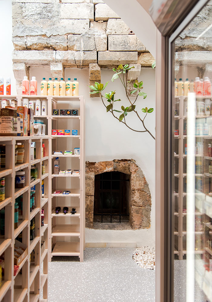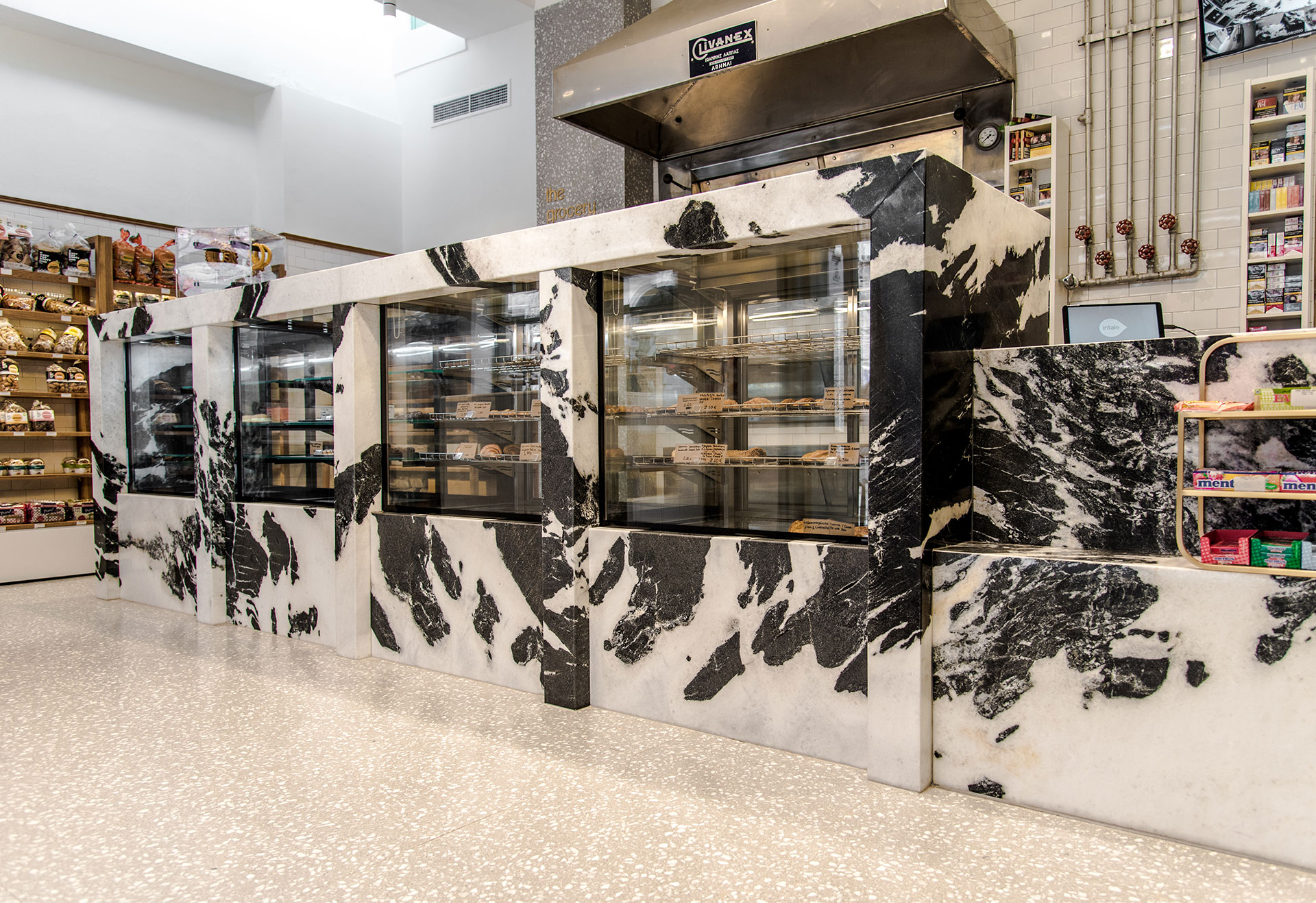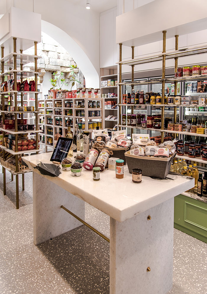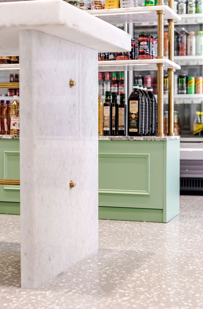 A lightweight metal structure organizes the interior and forms a subtle architectural separation between the bakery and grocery areas. Rather than creating a rigid boundary, the structure allows visual continuity and permeability, maintaining the openness of the space while clearly defining the programmatic zones. The design focuses on materiality, rhythm, and spatial clarity. Shelving systems, display surfaces, and custom-built elements were carefully integrated to enhance both functionality and the visual identity of the store. The result is a contemporary retail environment that evokes the atmosphere of the traditional neighborhood grocery while responding to the needs of a modern urban delicatessen.
